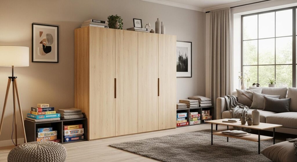 Optimiser l’espace, ce n’est pas qu’une affaire de centimètres. Qui a dit que seulement la chambre devait accueillir une grande penderie ? Le salon, souvent oublié, profite lui aussi d’un meuble design, laqué ou effet bois, qui structure l’espace tout en dissimulant une collection de jeux de société ou quelques plaids du dimanche soir. Le style, là encore, s’infiltre partout : poignées sobres, couleurs franches ou pastels, finitions qui s’accordent à votre décoration. Vous jonglez entre esthétique et praticité, sans jamais devoir choisir. Les accessoires trouvent leur place, chaussures, chapeaux, sacs, tout s’aligne, tout disparaît derrière des portes closes, parfois même dans des compartiments secrets.